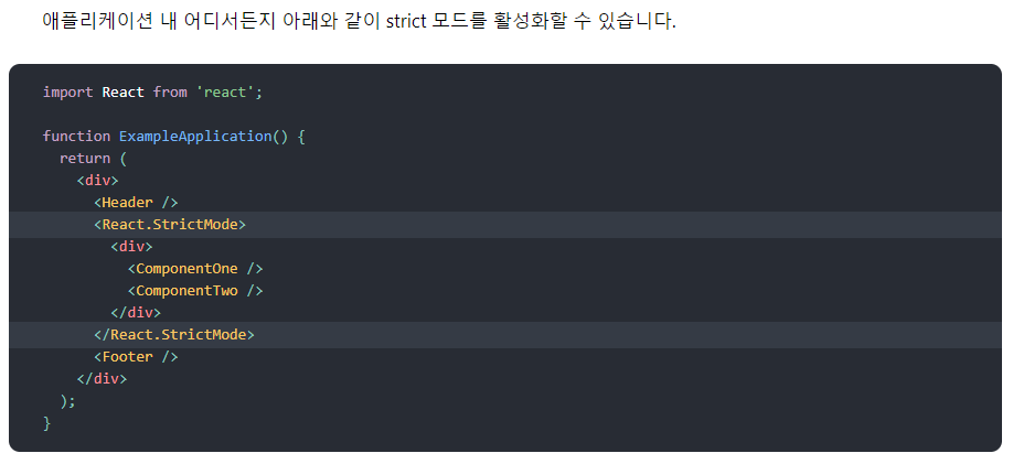 일반적으로 react-create-app을 많이 사용하는데 생성을 하면 index.js에 다음과 깉이 <React.StrictMode>가 있다.